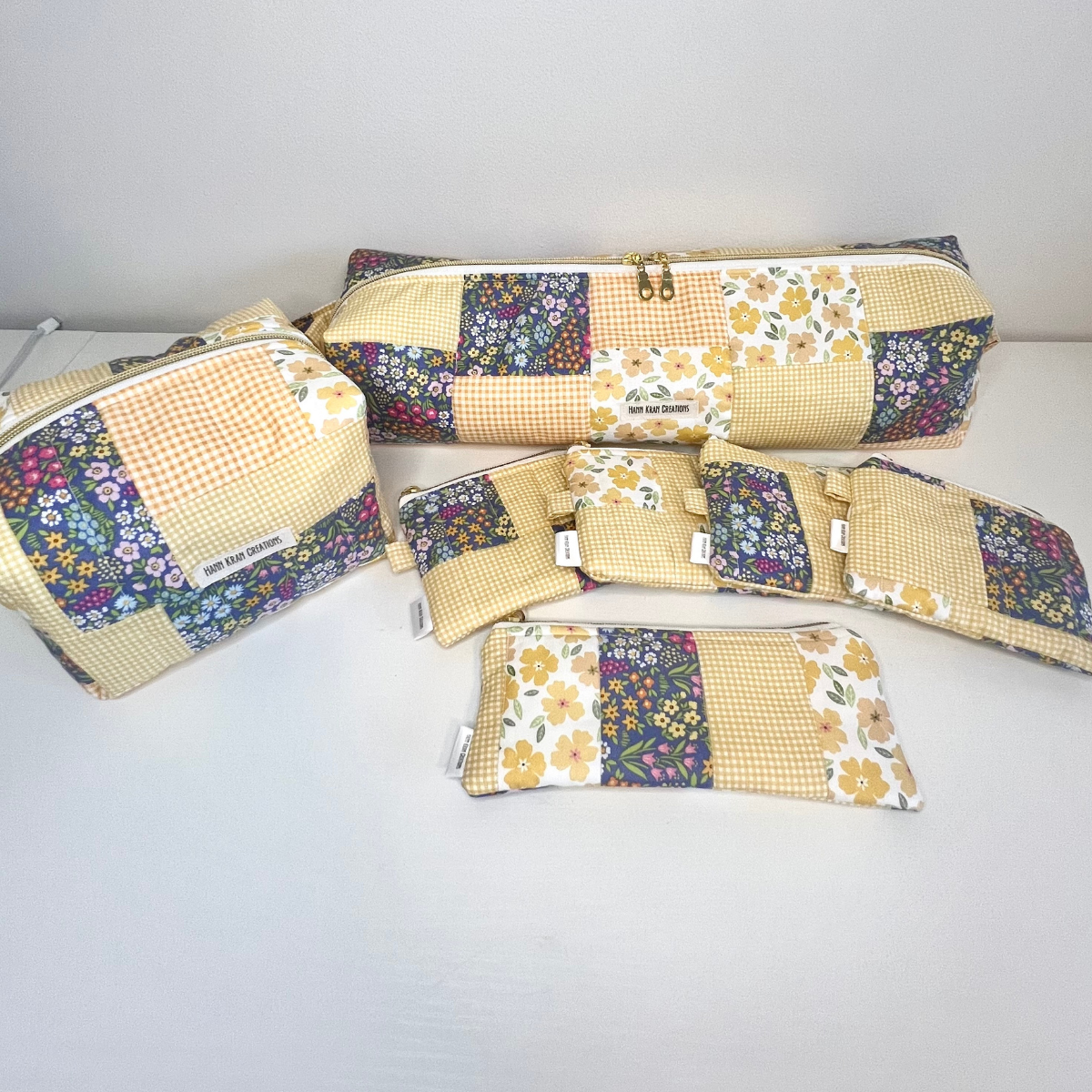 Handmade quilted boxy bags in two versatile sizes—perfect for makeup, toiletries, or...