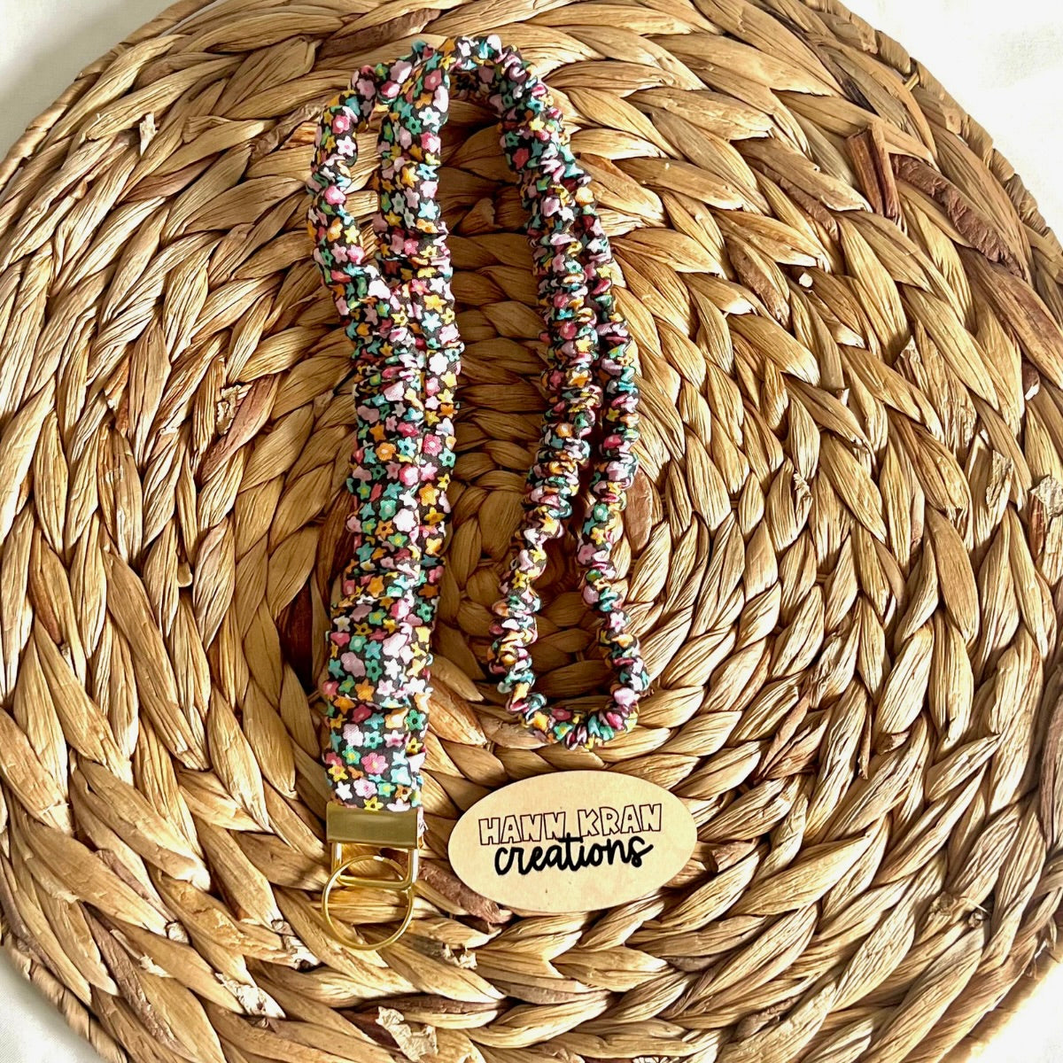 Add a stylish and functional touch to your everyday essentials with our handmade scrunchie lanyard! Made from soft, high-quality fabric, this lanyard features a scrunchie-style design for a trendy and comfortable fit.