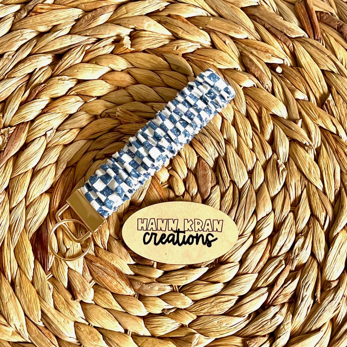 Designed for convenience, it features a durable key ring to easily attach keys, fobs, or small accessories. Since each wristlet is handmade, sizes may vary slightly, but all are approximately 4.5 inches in diameter.