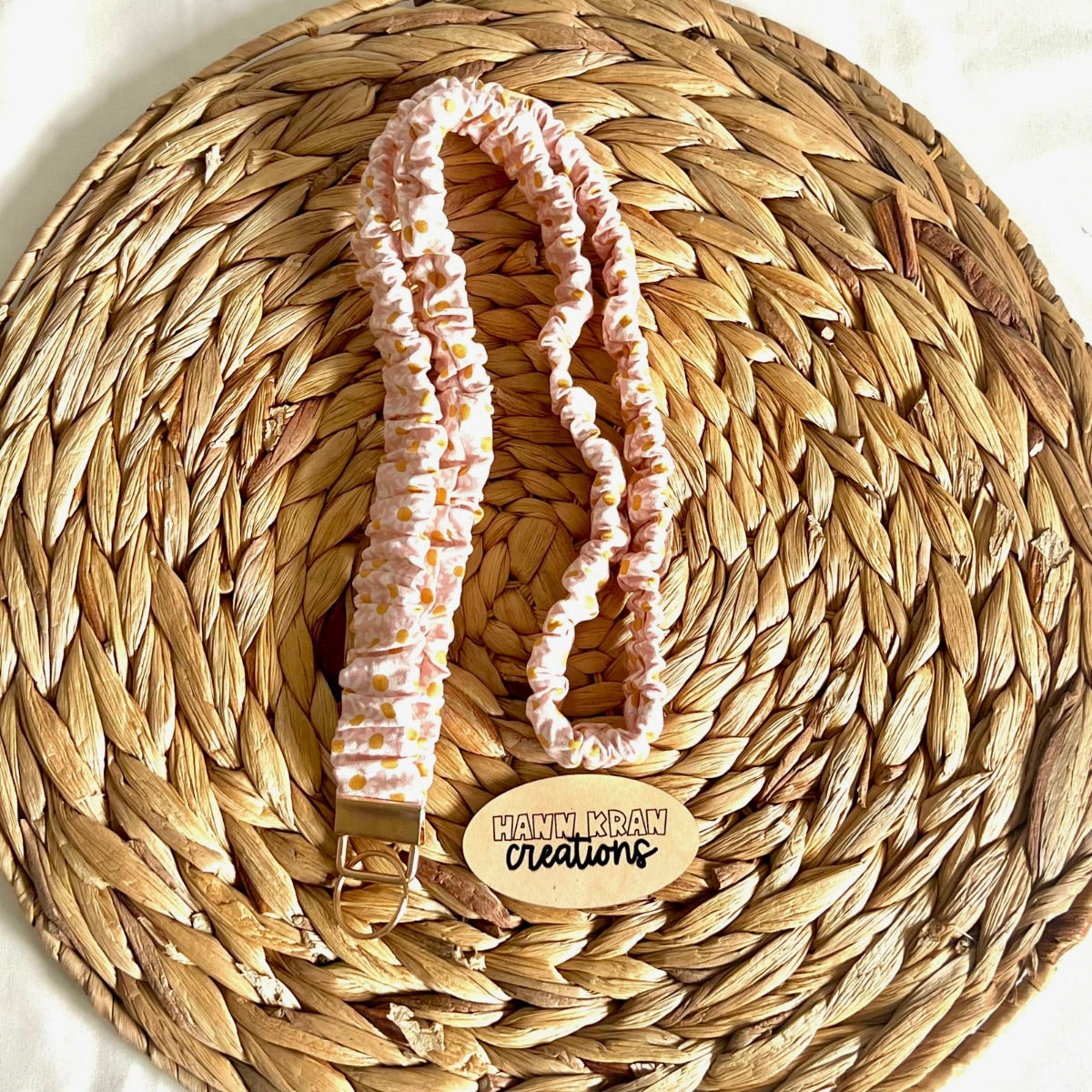Add a stylish and functional touch to your everyday essentials with our handmade scrunchie lanyard! Made from soft, high-quality fabric, this lanyard features a scrunchie-style design for a trendy and comfortable fit.