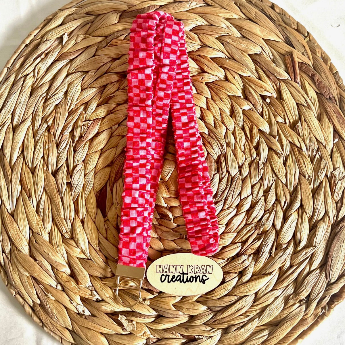 Add a stylish and functional touch to your everyday essentials with our handmade scrunchie lanyard! Made from soft, high-quality fabric, this lanyard features a scrunchie-style design for a trendy and comfortable fit.
