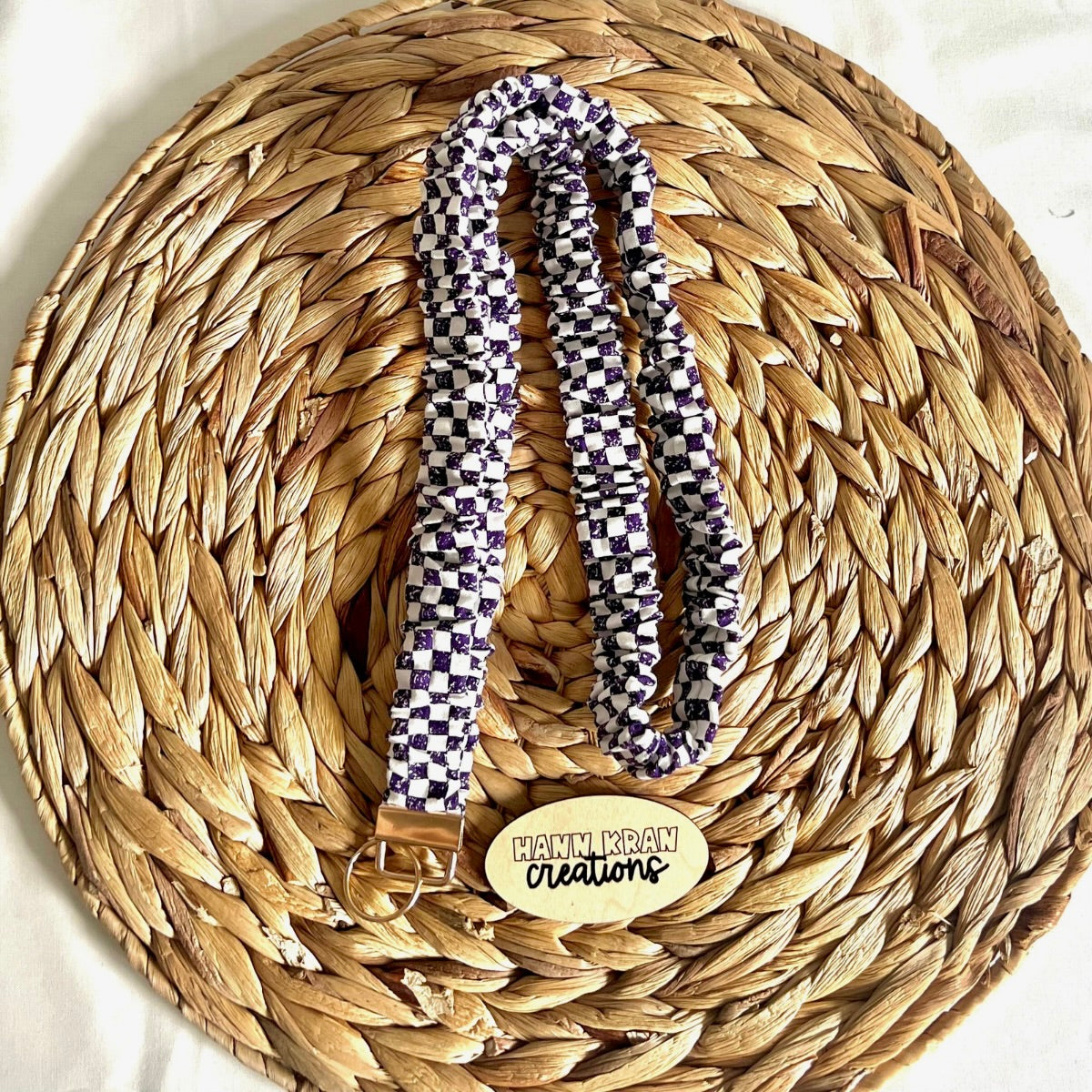 Add a stylish and functional touch to your everyday essentials with our handmade scrunchie lanyard! Made from soft, high-quality fabric, this lanyard features a scrunchie-style design for a trendy and comfortable fit.