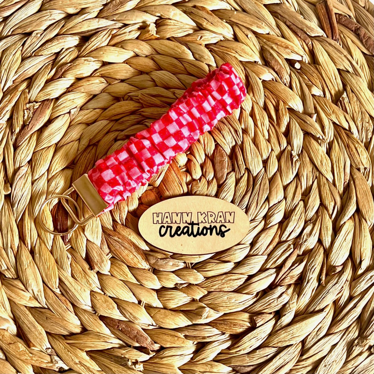 Pink and Red Checkered Scrunchie Wristlet Keychain