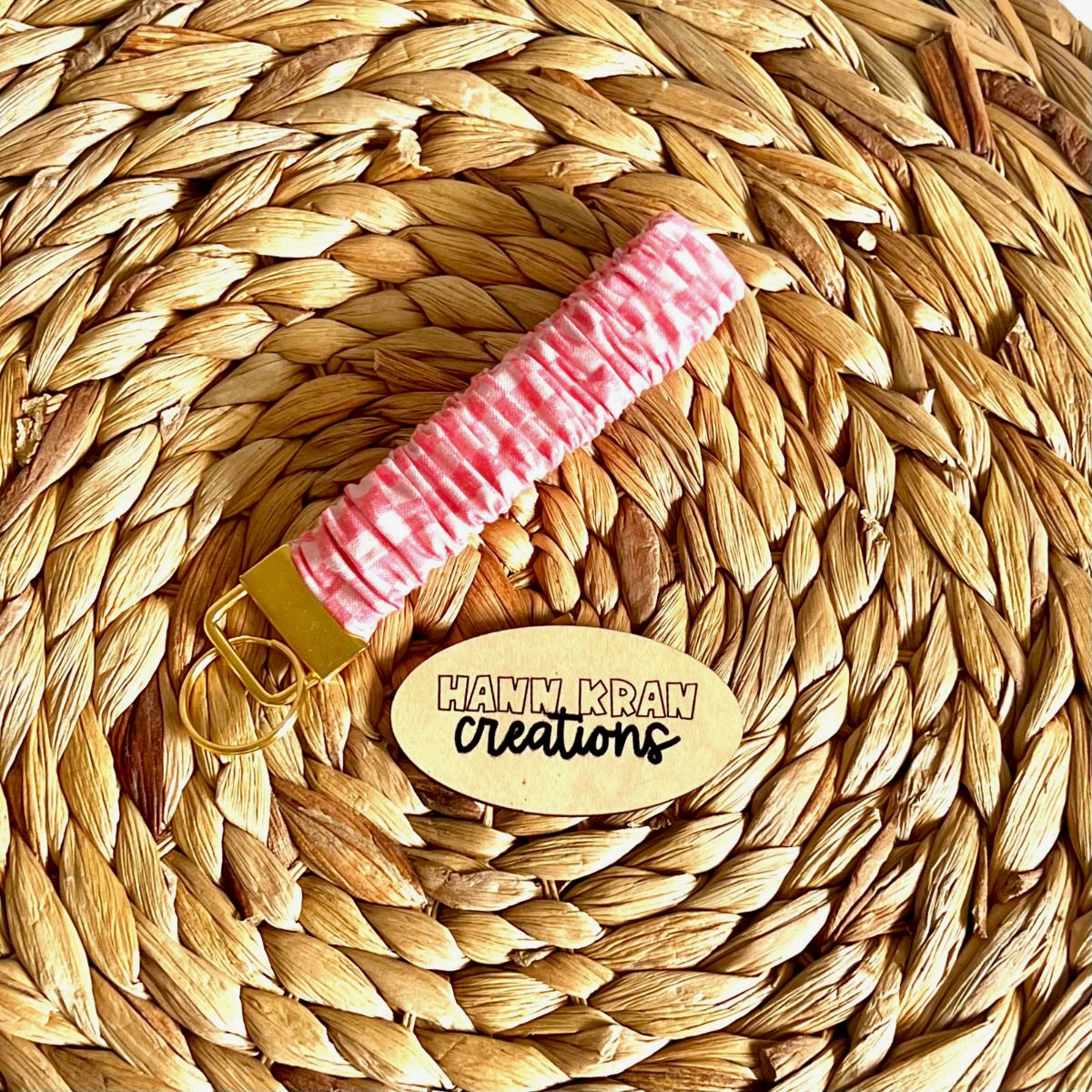 Light and Dark Pink Checkered Scrunchie Wristlet Keychain