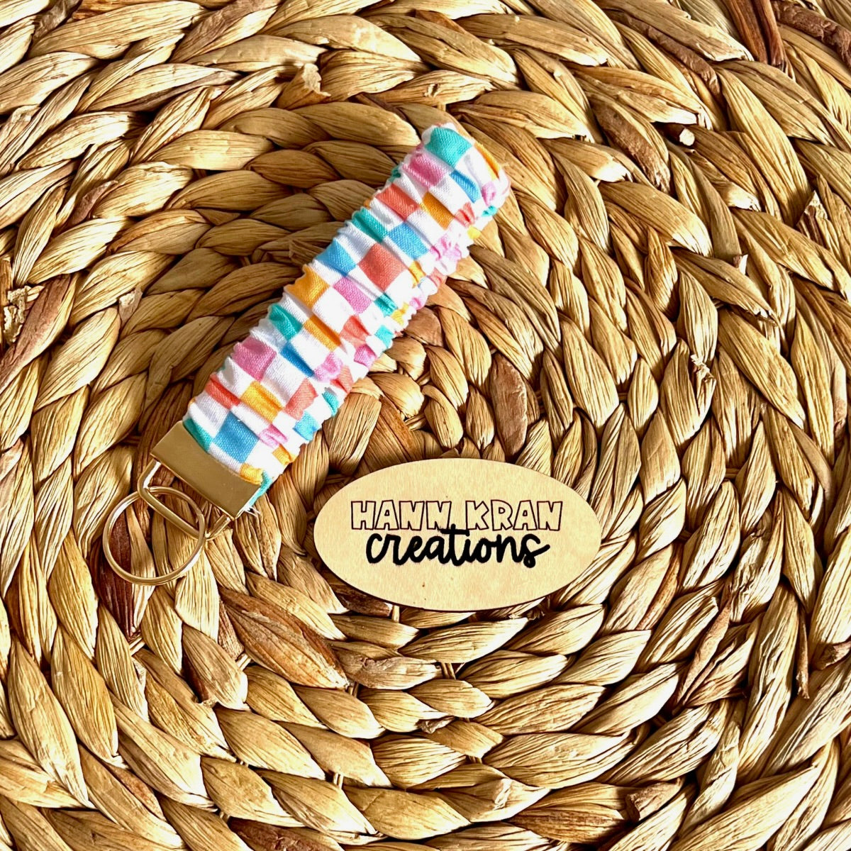 Designed for convenience, it features a durable key ring to easily attach keys, fobs, or small accessories. Since each wristlet is handmade, sizes may vary slightly, but all are approximately 4.5 inches in diameter.