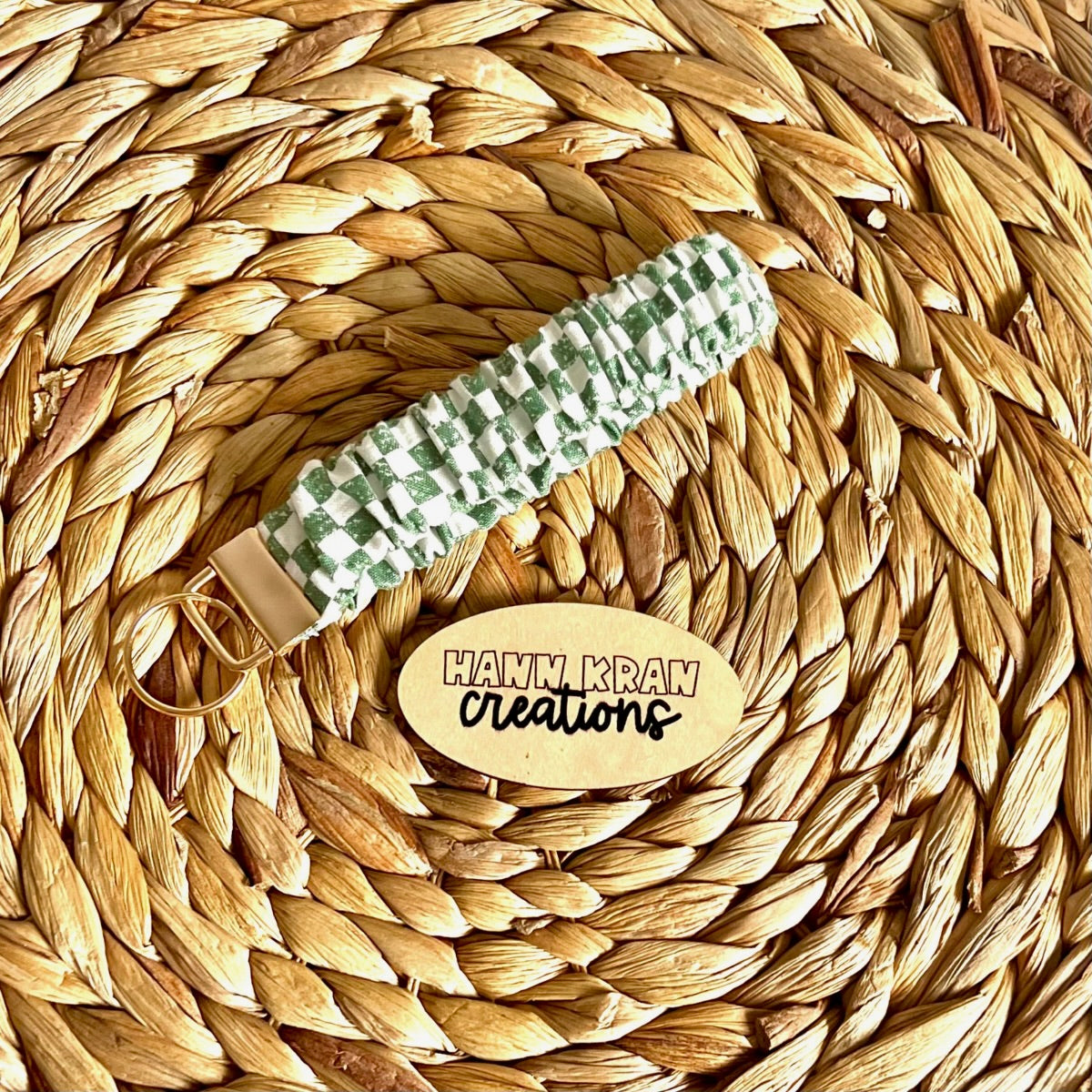 Keep your keys close in style with our handmade scrunchie wristlet! Made from soft, high-quality fabric, this scrunchie-style key holder is both trendy and comfortable to wear around your wrist.