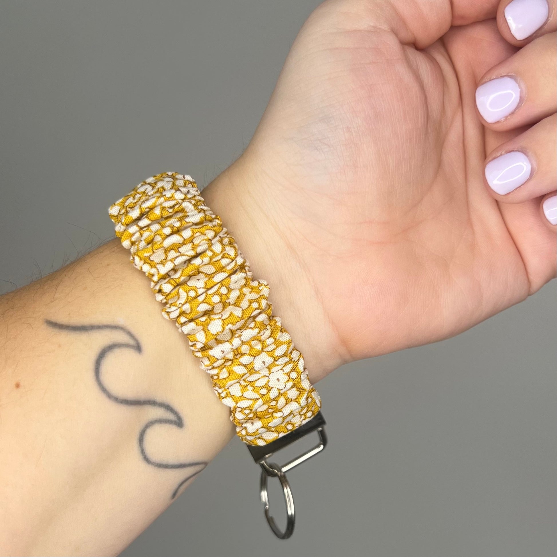 Mustard Floral Scrunchie Wristlet Keychain