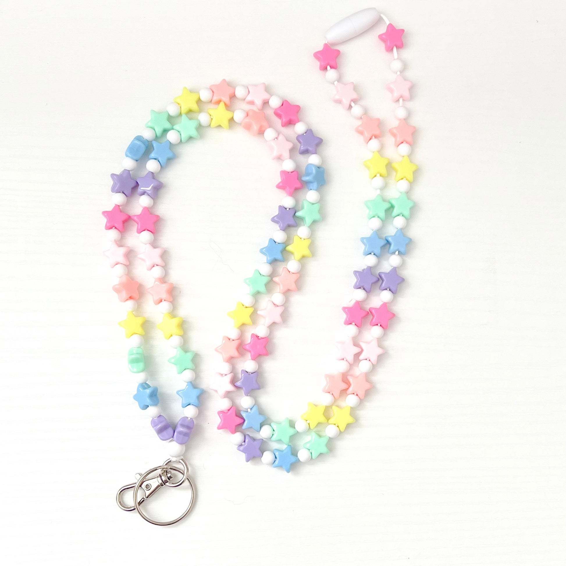 Introducing our Rainbow Stars Beaded Lanyard - the perfect accessory to brighten up your everyday life while keeping your essentials securely at your fingertips.