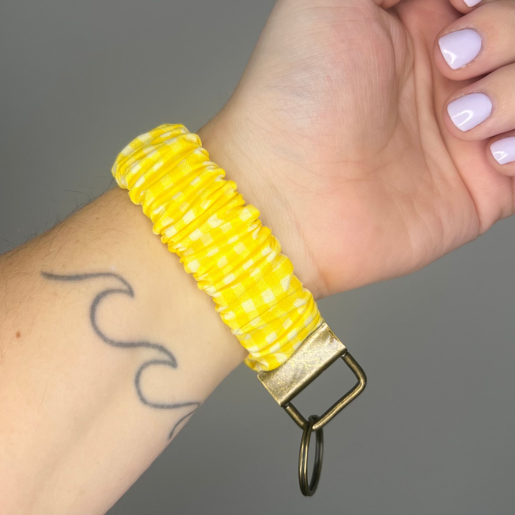 Yellow Gingham Scrunchie Wristlet Keychain