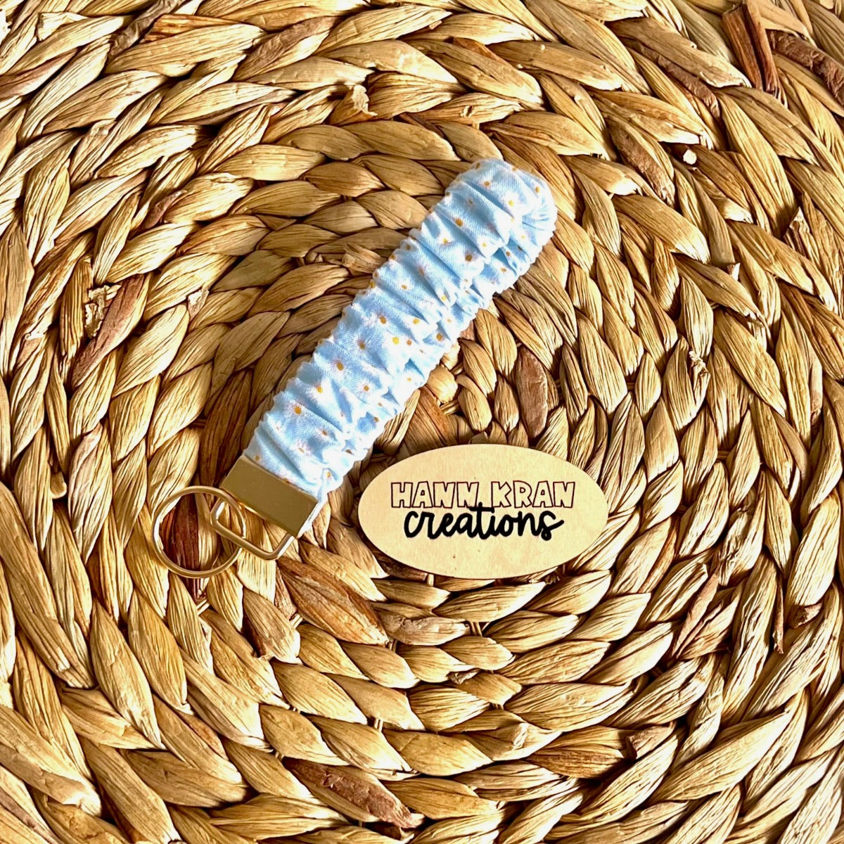 Keep your keys close in style with our handmade scrunchie wristlet! Made from soft, high-quality fabric, this scrunchie-style key holder is both trendy and comfortable to wear around your wrist.