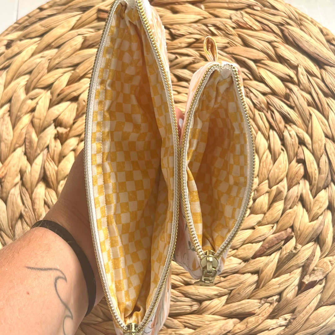 Stay organized in style with our handmade keychain wallets and pencil pouches — thoughtfully crafted from high-quality cotton fabric and fully lined for durability.