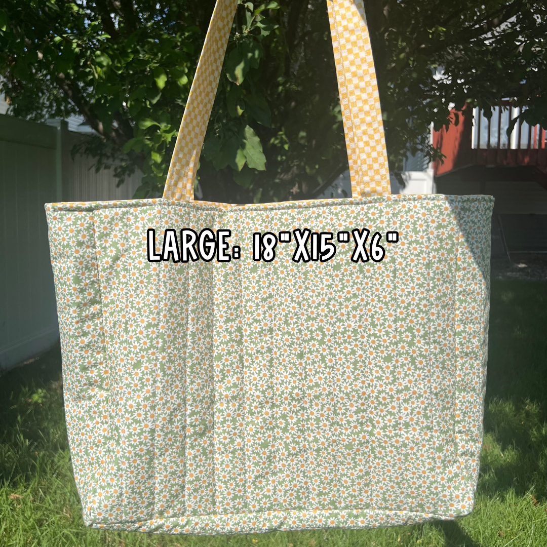 Carry a little sunshine wherever you go with our handmade quilted floral totes! Thoughtfully crafted from high-quality cotton fabric, each tote features a soft quilted finish and sweet vintage-inspired prints that add charm to any outfit.