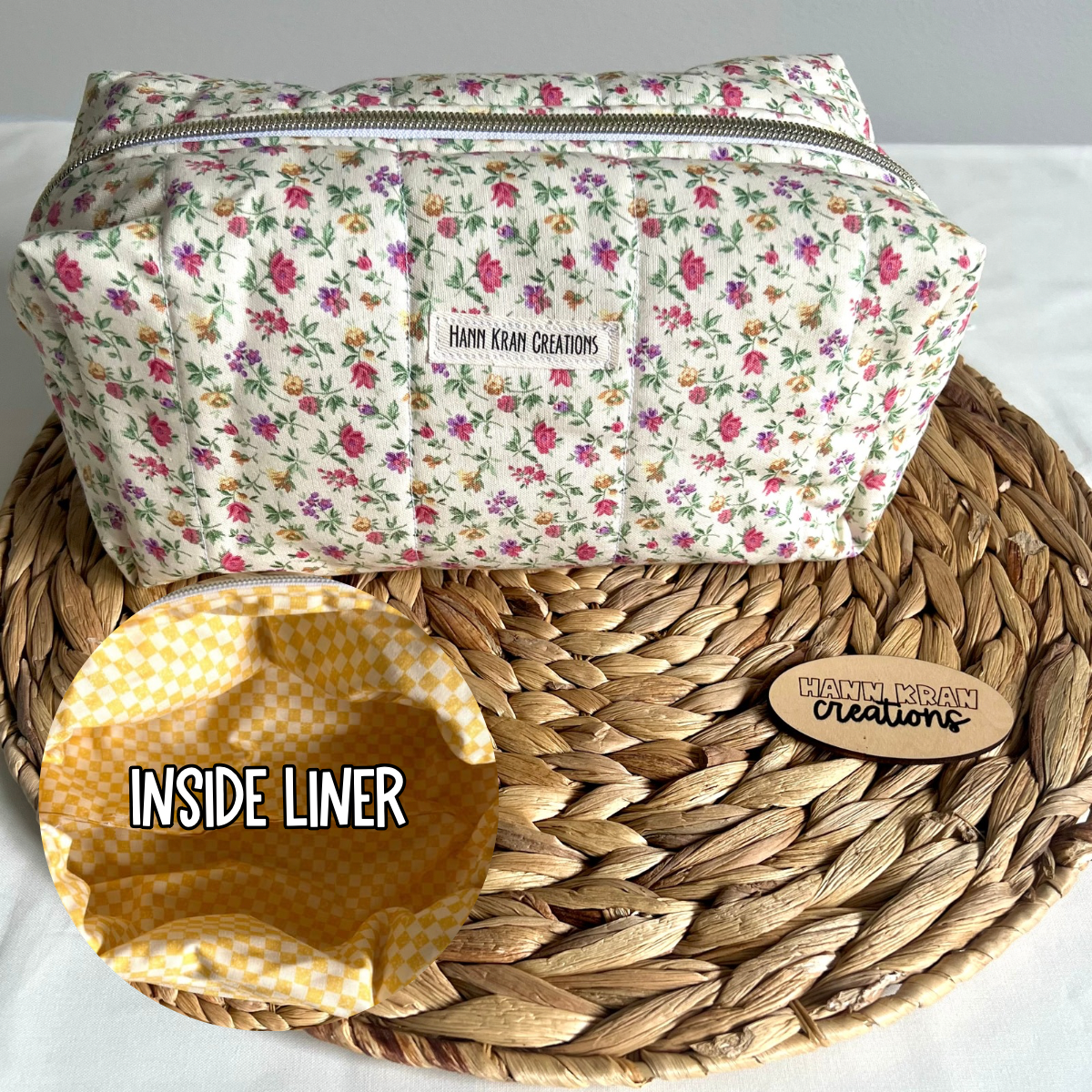 Stay organized in style with these handmade boxy bags—perfect for makeup, toiletries, or travel essentials. Each bag is fully lined, quilted for structure, and finished with a durable zipper closure.