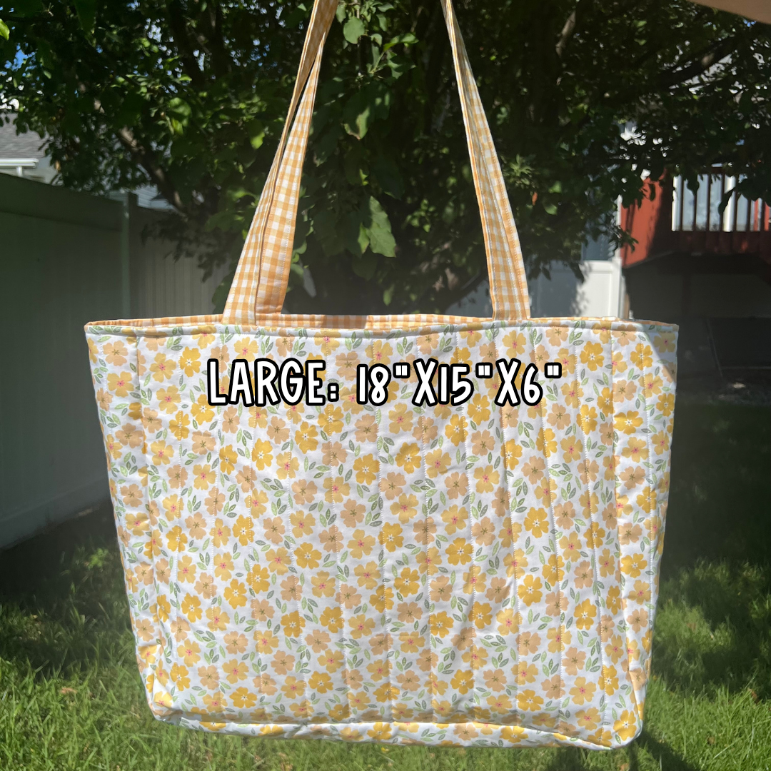 Carry a little sunshine wherever you go with our handmade quilted floral totes! Thoughtfully crafted from high-quality cotton fabric, each tote features a soft quilted finish and sweet vintage-inspired prints that add charm to any outfit.