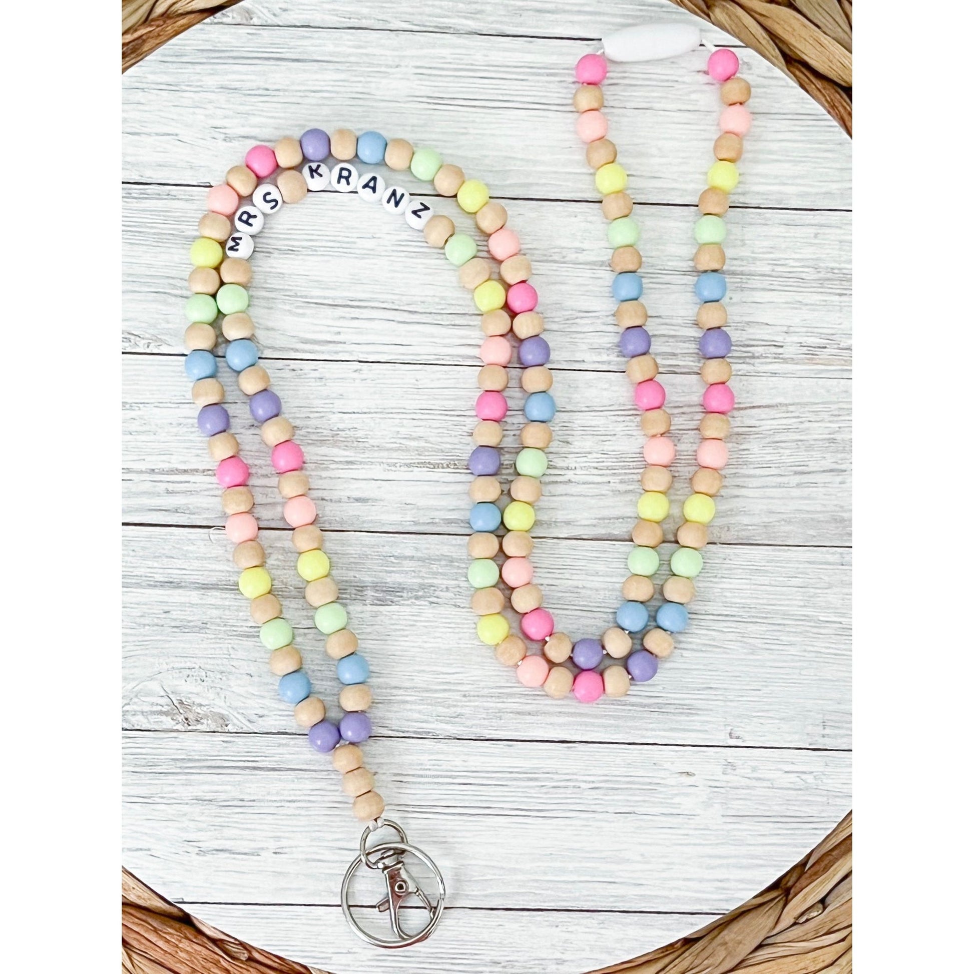 Our Lanyard is expertly handcrafted with high-quality glass beads in a mesmerizing array of pastel hues that seamlessly blend together to create a soft and captivating rainbow effect. Each lanyard features an easy-to-use clasp, allowing for effortless attachment and detachment of your keys, ID cards, or other important items.