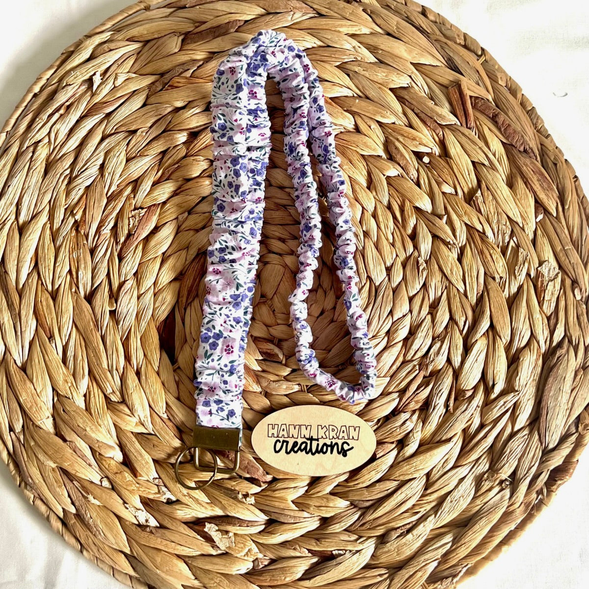Add a stylish and functional touch to your everyday essentials with our handmade scrunchie lanyard! Made from soft, high-quality fabric, this lanyard features a scrunchie-style design for a trendy and comfortable fit.