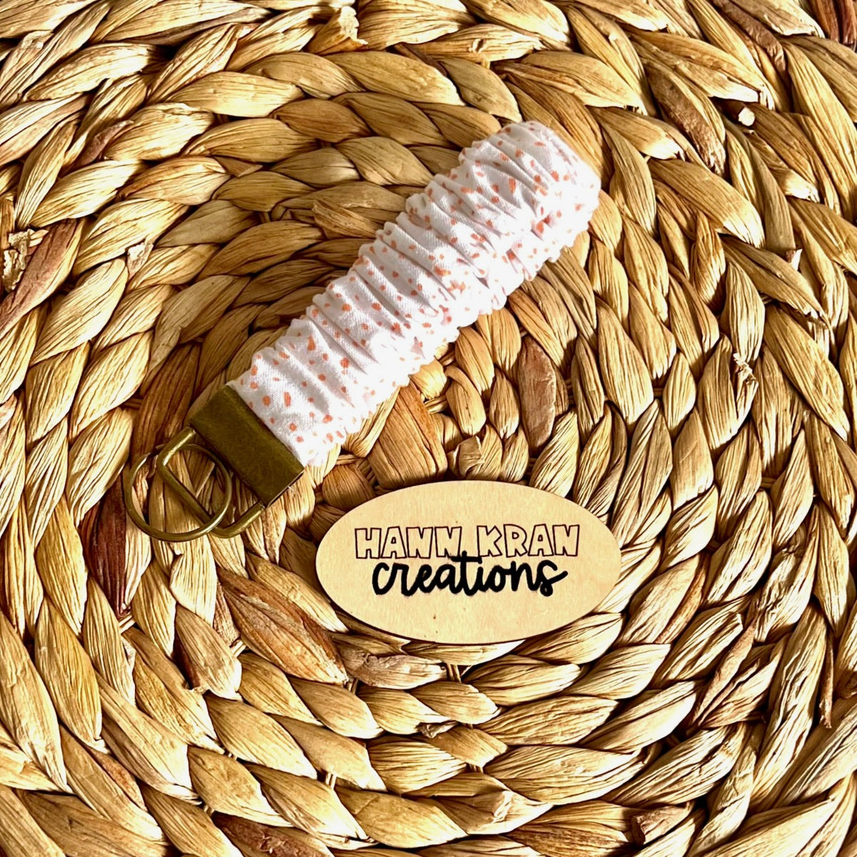 Keep your keys close in style with our handmade scrunchie wristlet! Made from soft, high-quality fabric, this scrunchie-style key holder is both trendy and comfortable to wear around your wrist.
