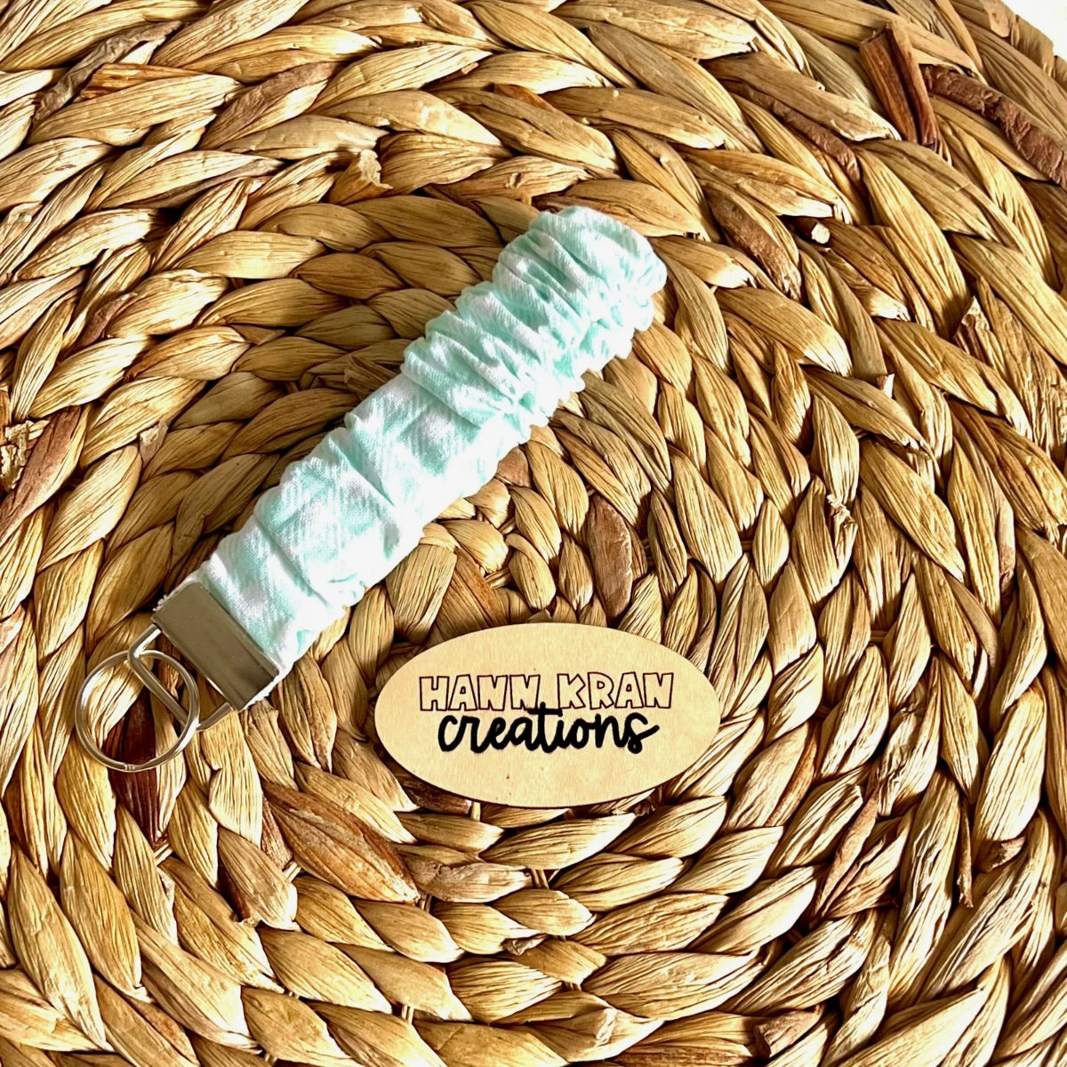 Keep your keys close in style with our handmade scrunchie wristlet! Made from soft, high-quality fabric, this scrunchie-style key holder is both trendy and comfortable to wear around your wrist.