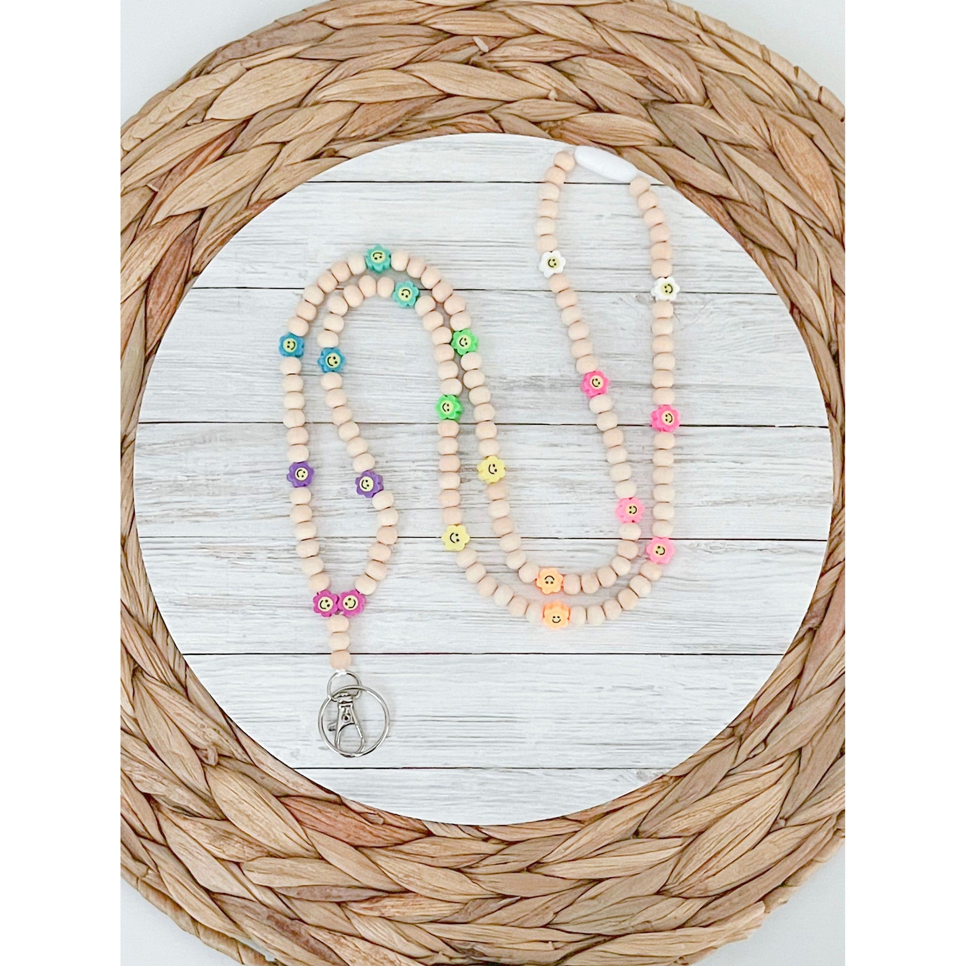Handcrafted with an eye-catching array of high-quality clay and wood beads, this lanyard provides an attractive and polished appearance. The durable metal clasp ensures that your keys, ID cards, or other essential items remain securely attached, while allowing for easy removal when necessary.